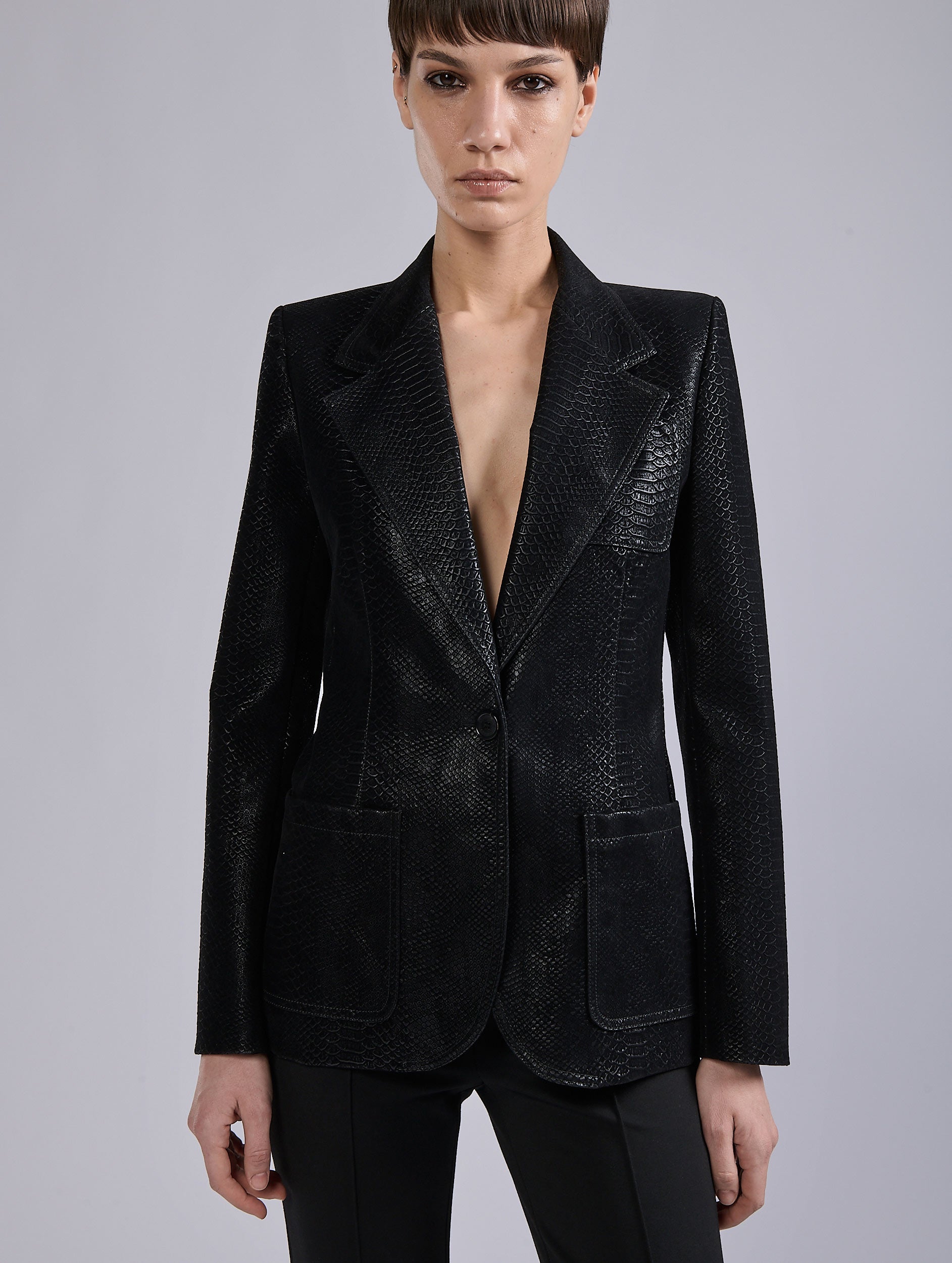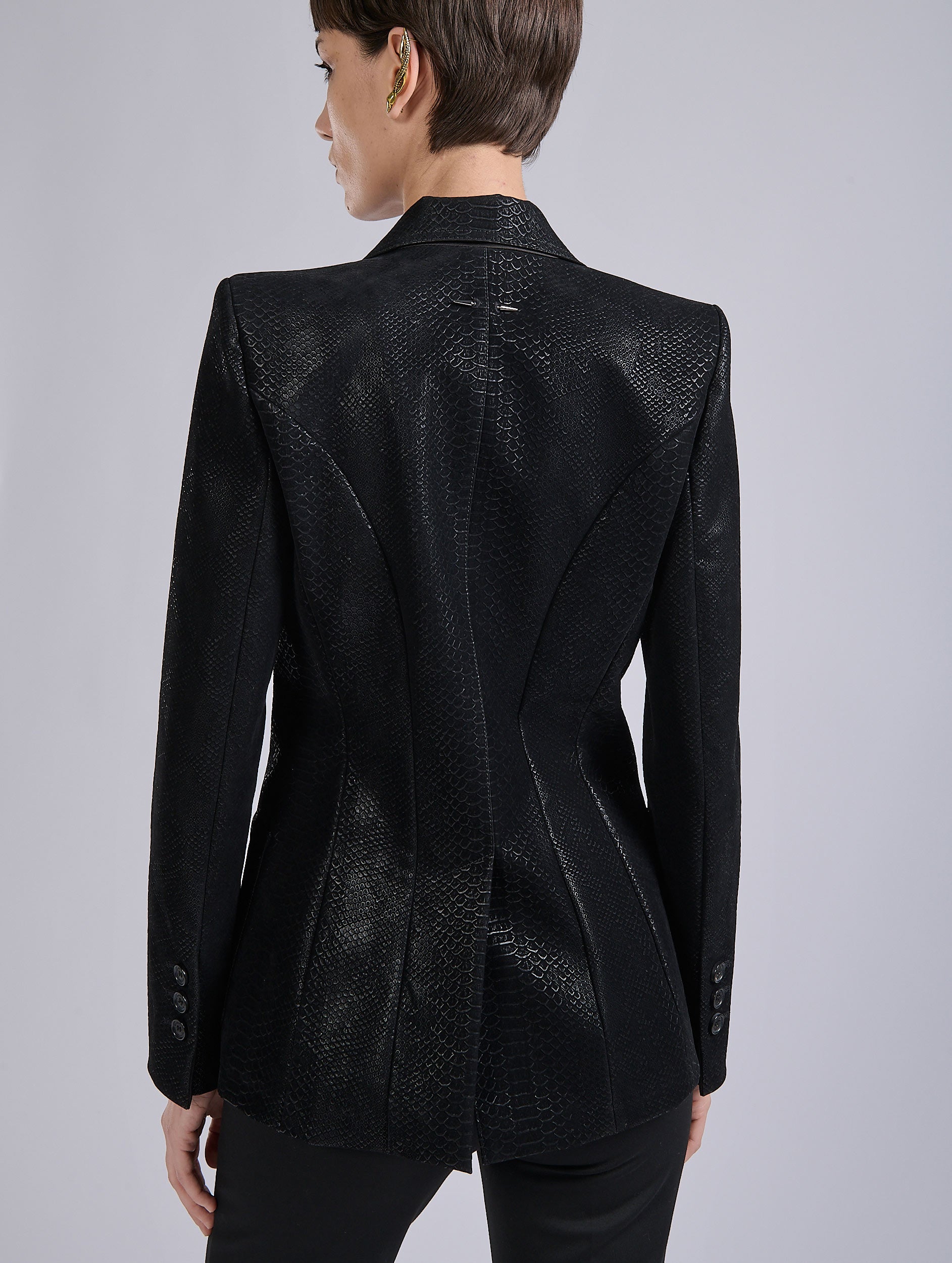 Black flocked python imitation leather jacketSKU:G1208GTA_10