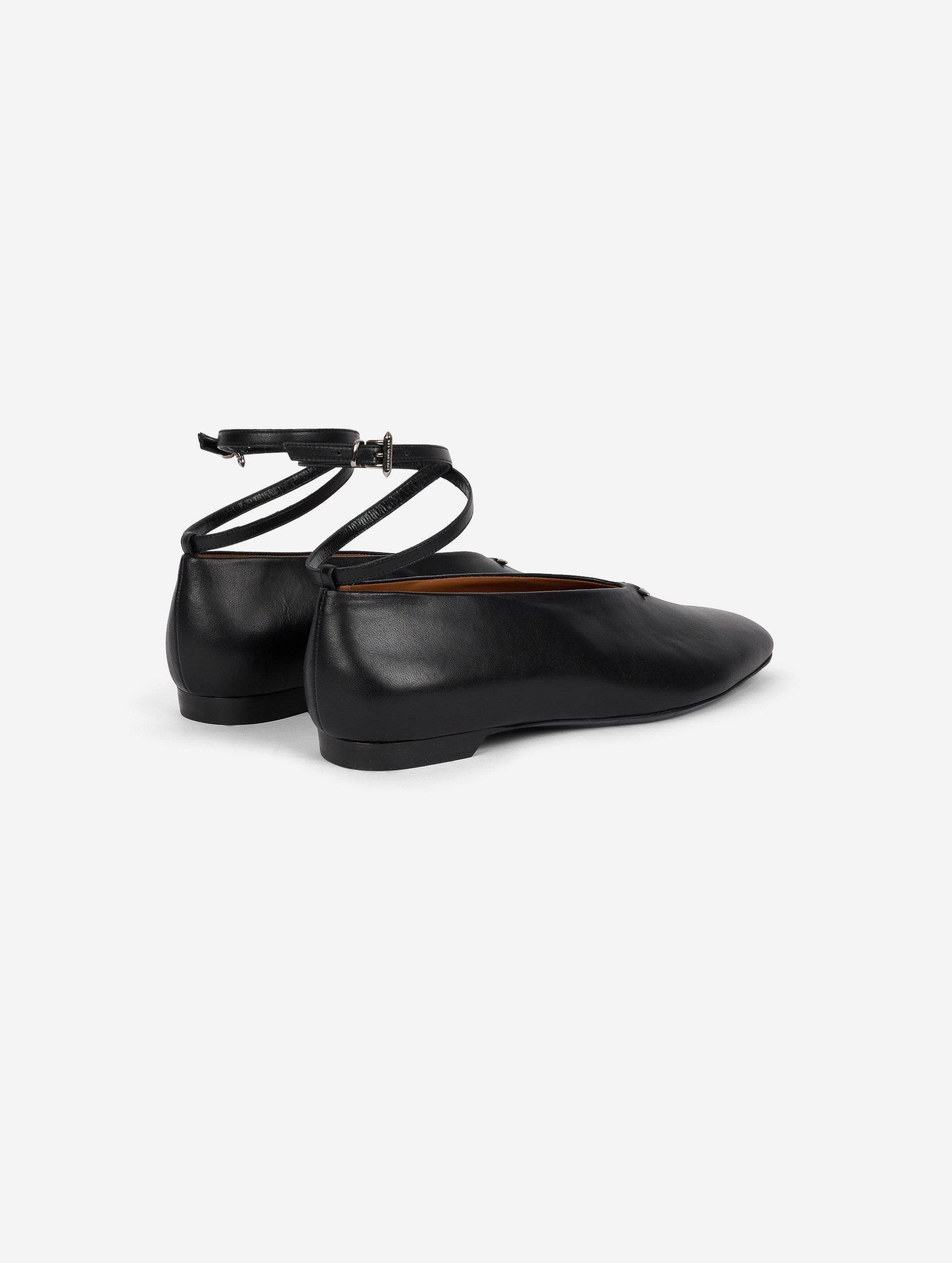 black leather ankle strap ballet flats