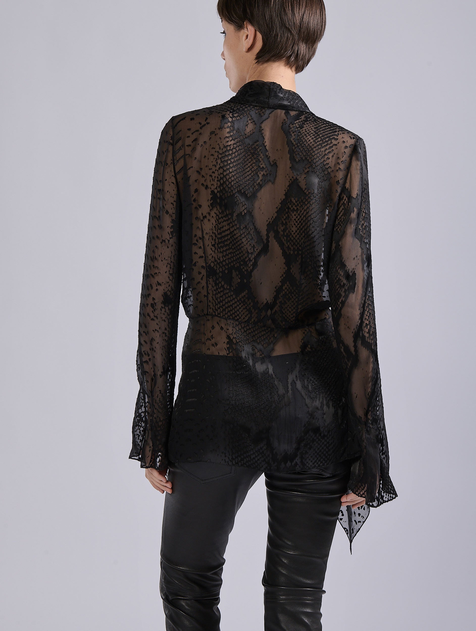 Black python-patterned devoré satin blouseSKU:G1427GRP_10