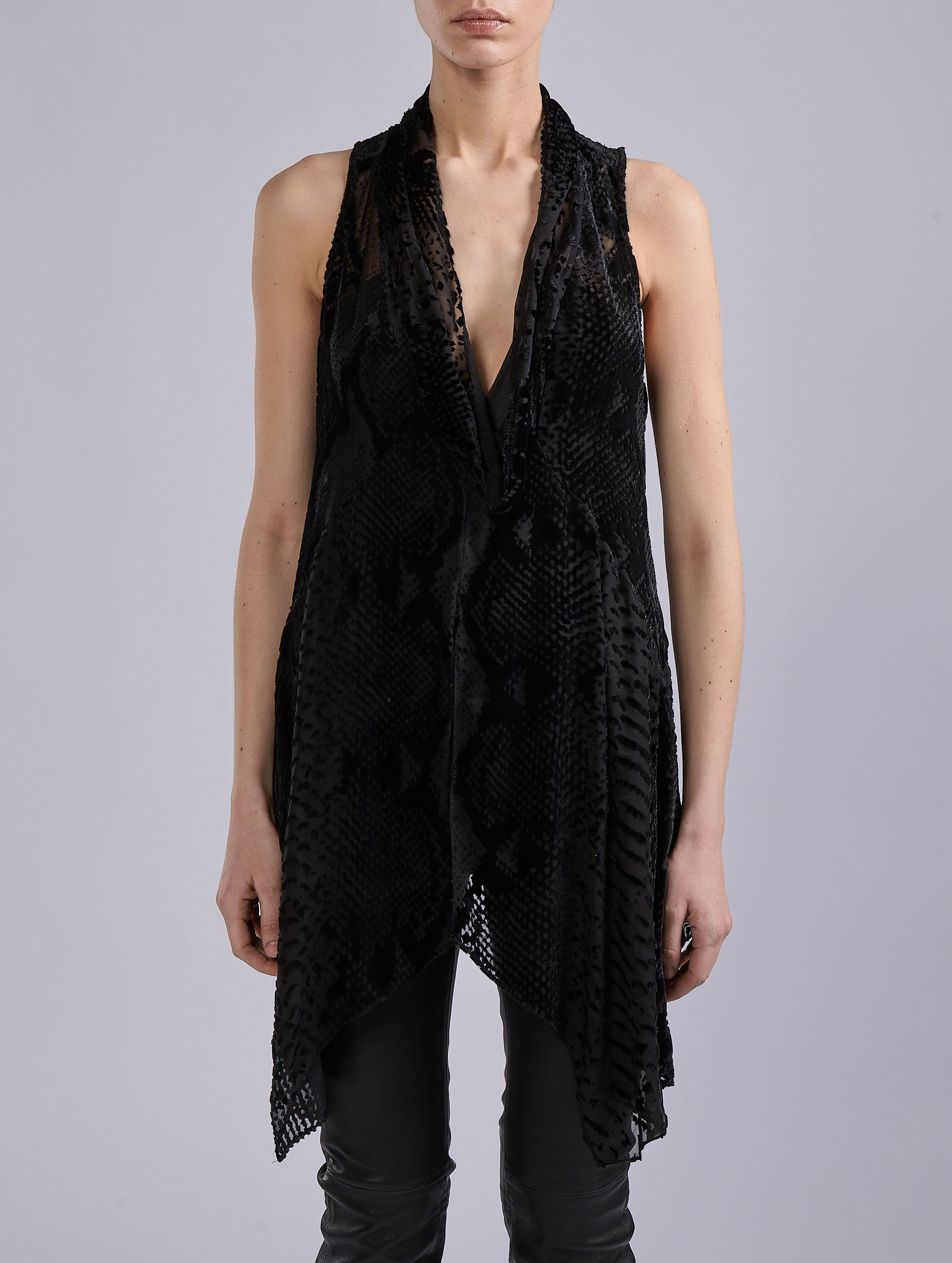 Black sleeveless top in devoré velvet pythonSKU:G1429GRO_10