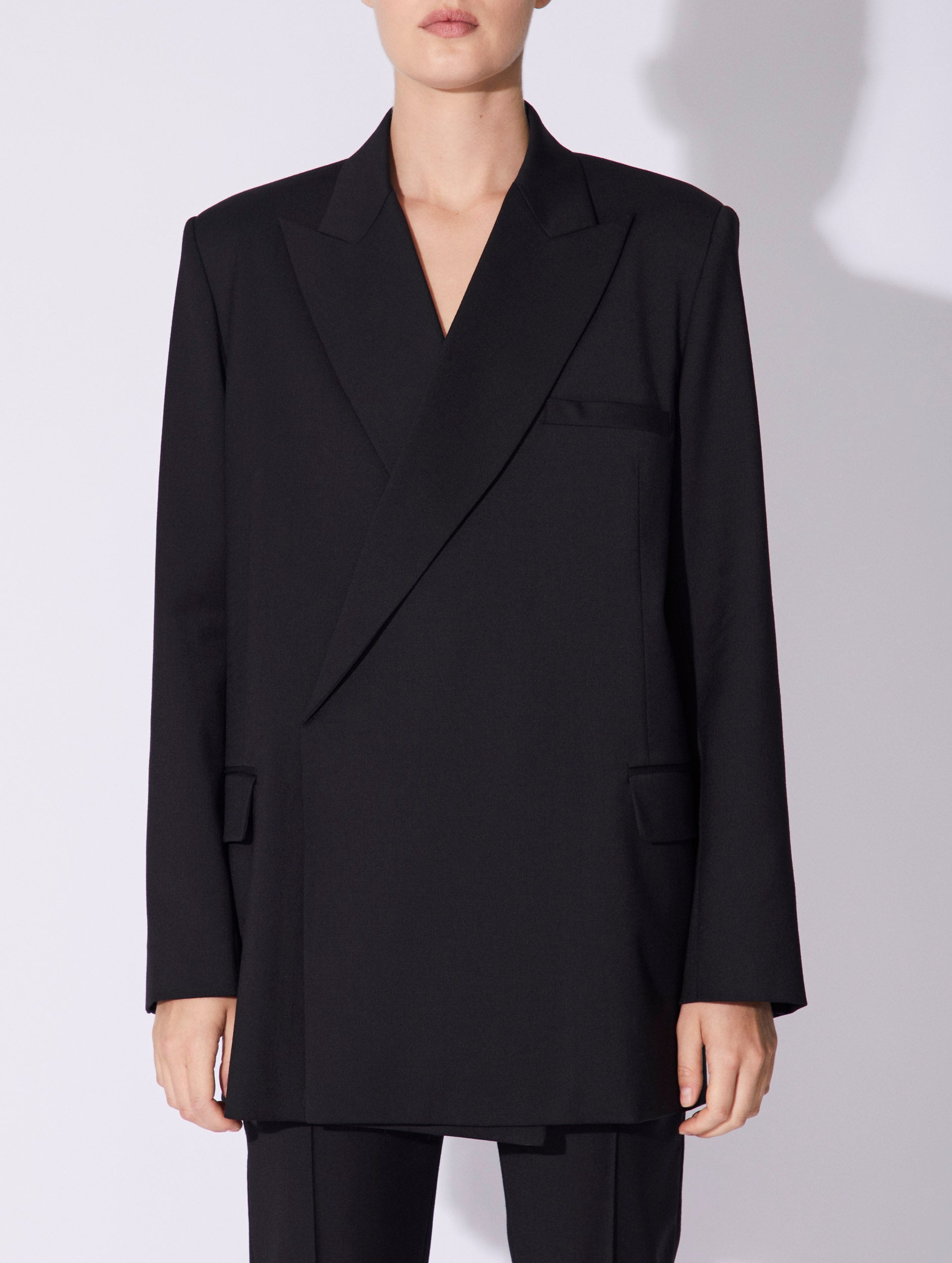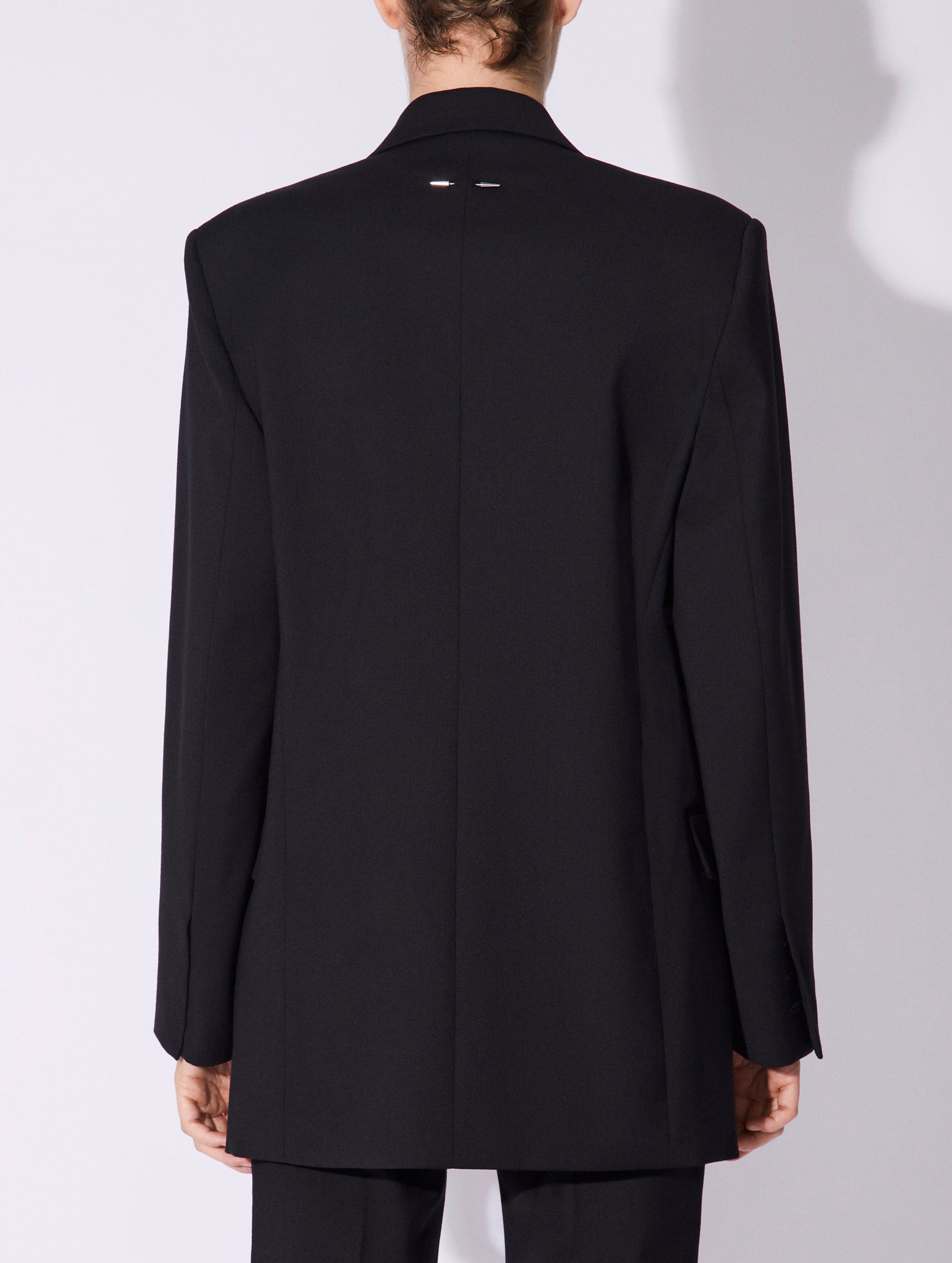 Black stretch wool loose double-breasted suit jacketSKU:D1224AEG_10