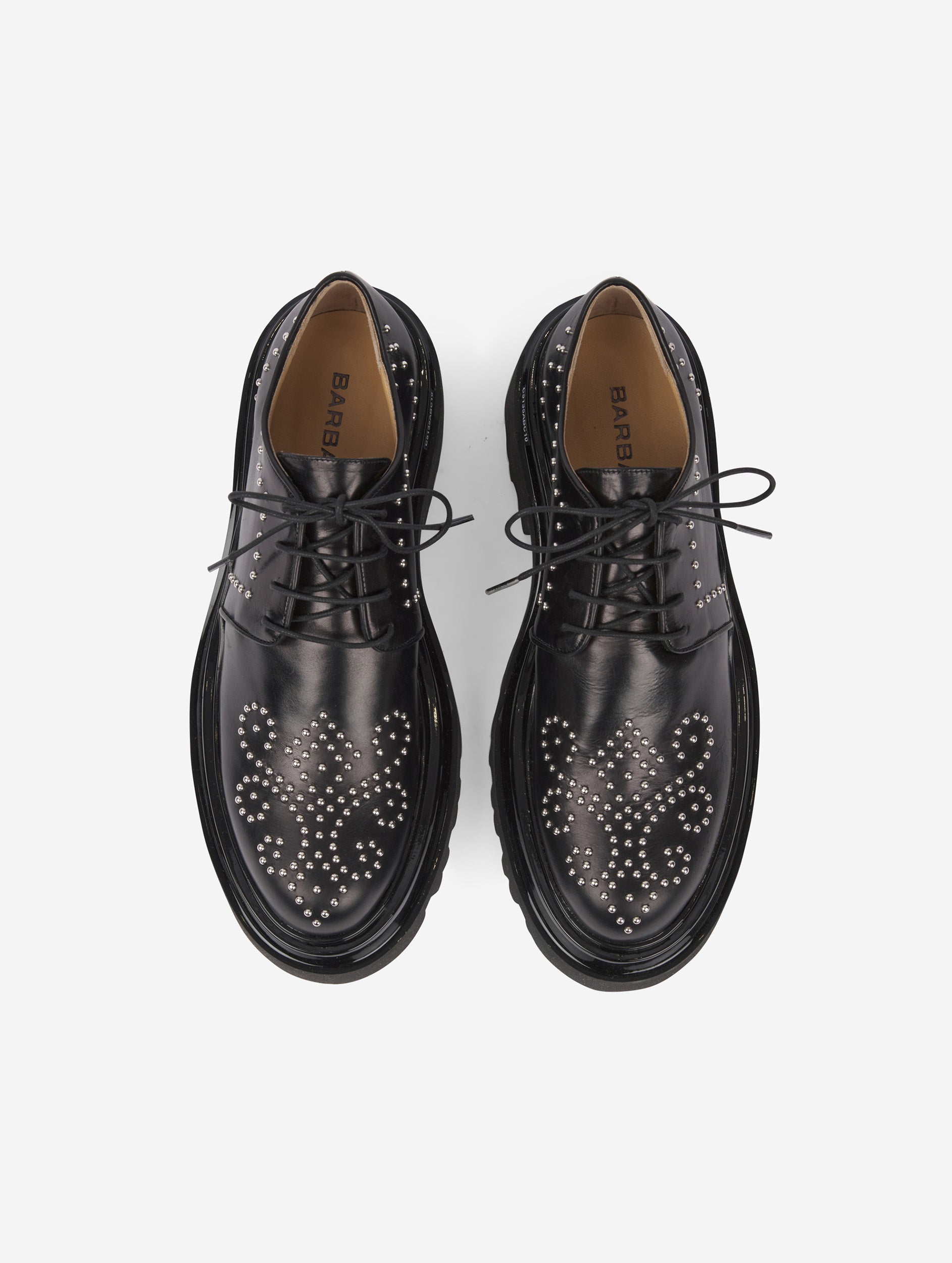 black studded leather brogues