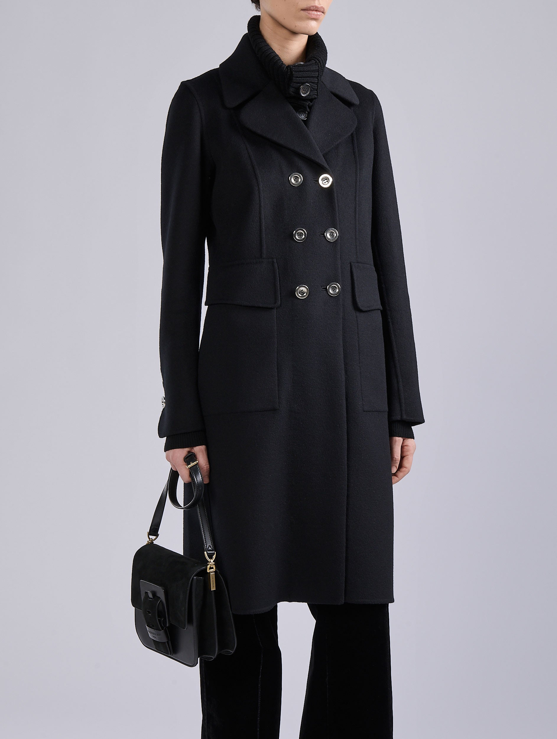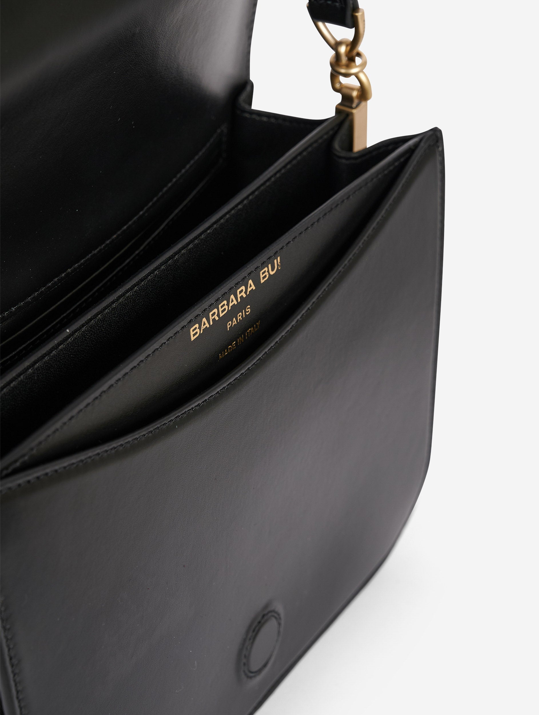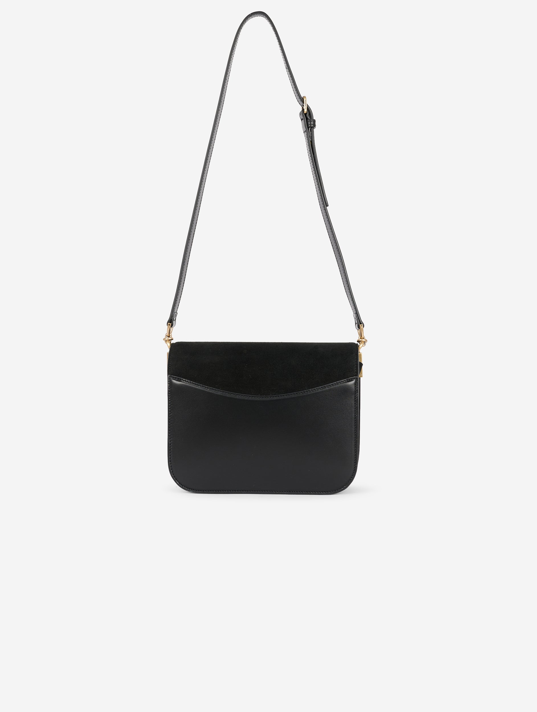 "TOUCH ME" two-material bag in black suede and leather. Magnetic closure flap with reinforced leather maxi buckle, signature of our “ME” bag line. Adjustable shoulder strap with removable strap and buckles for shoulder or cross-body carrying. Back and front pockets, double interior compartment with pockets.
