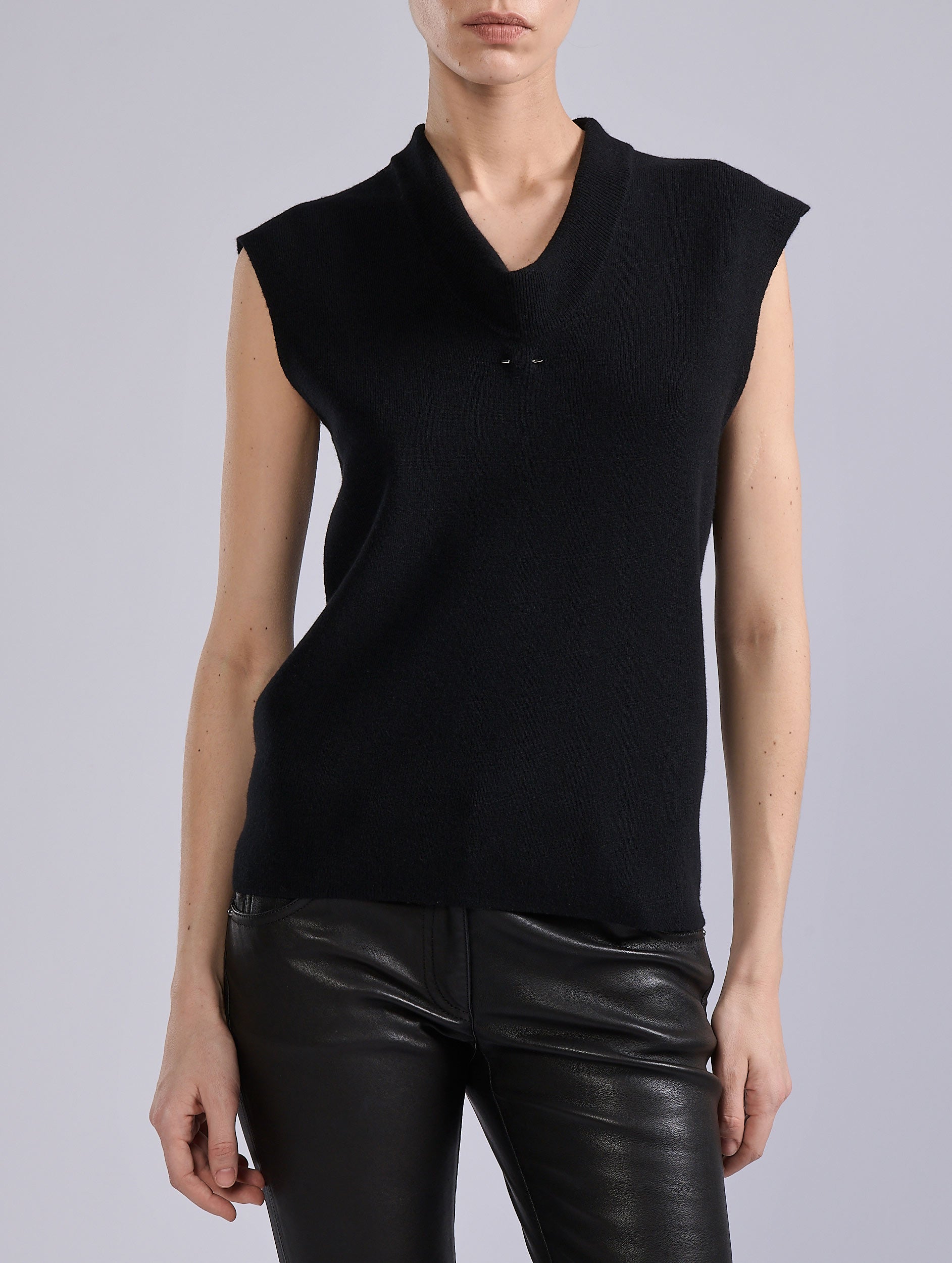 Black wool and cashmere sleeveless sweaterSKU:G4228WXA_10