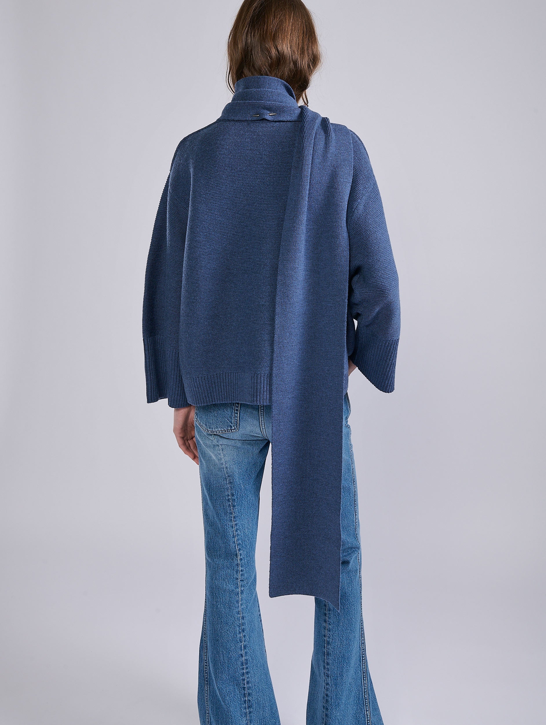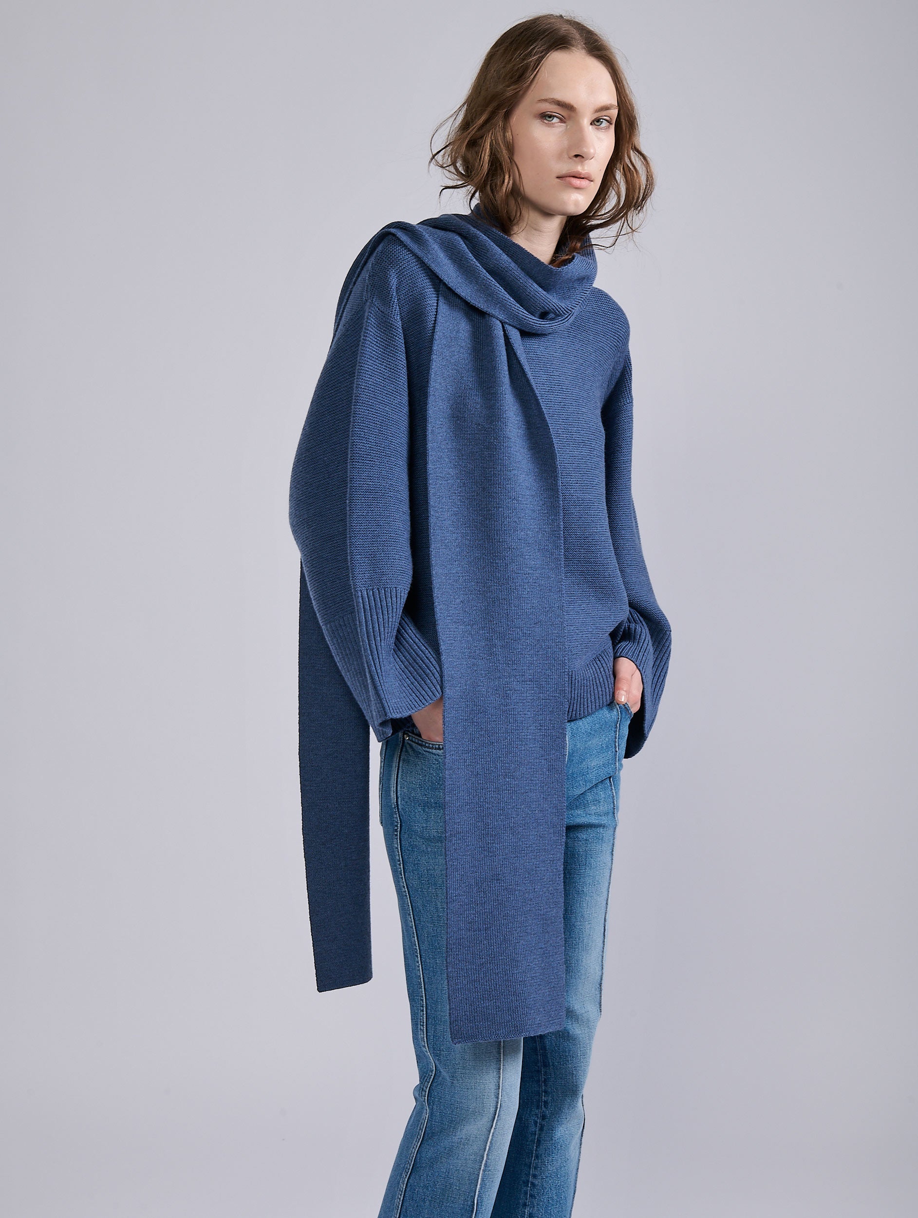 Blue merino wool integrated scarf sweaterSKU:G4211MXH_35
