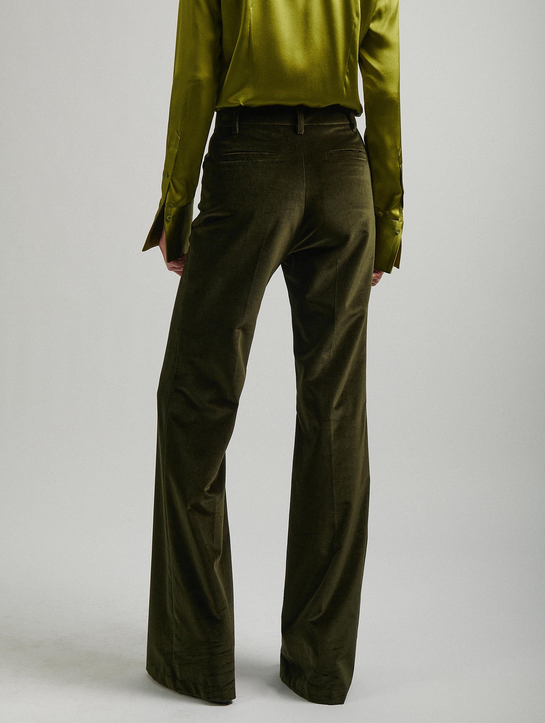 Bootleg suit trousers in green velvet