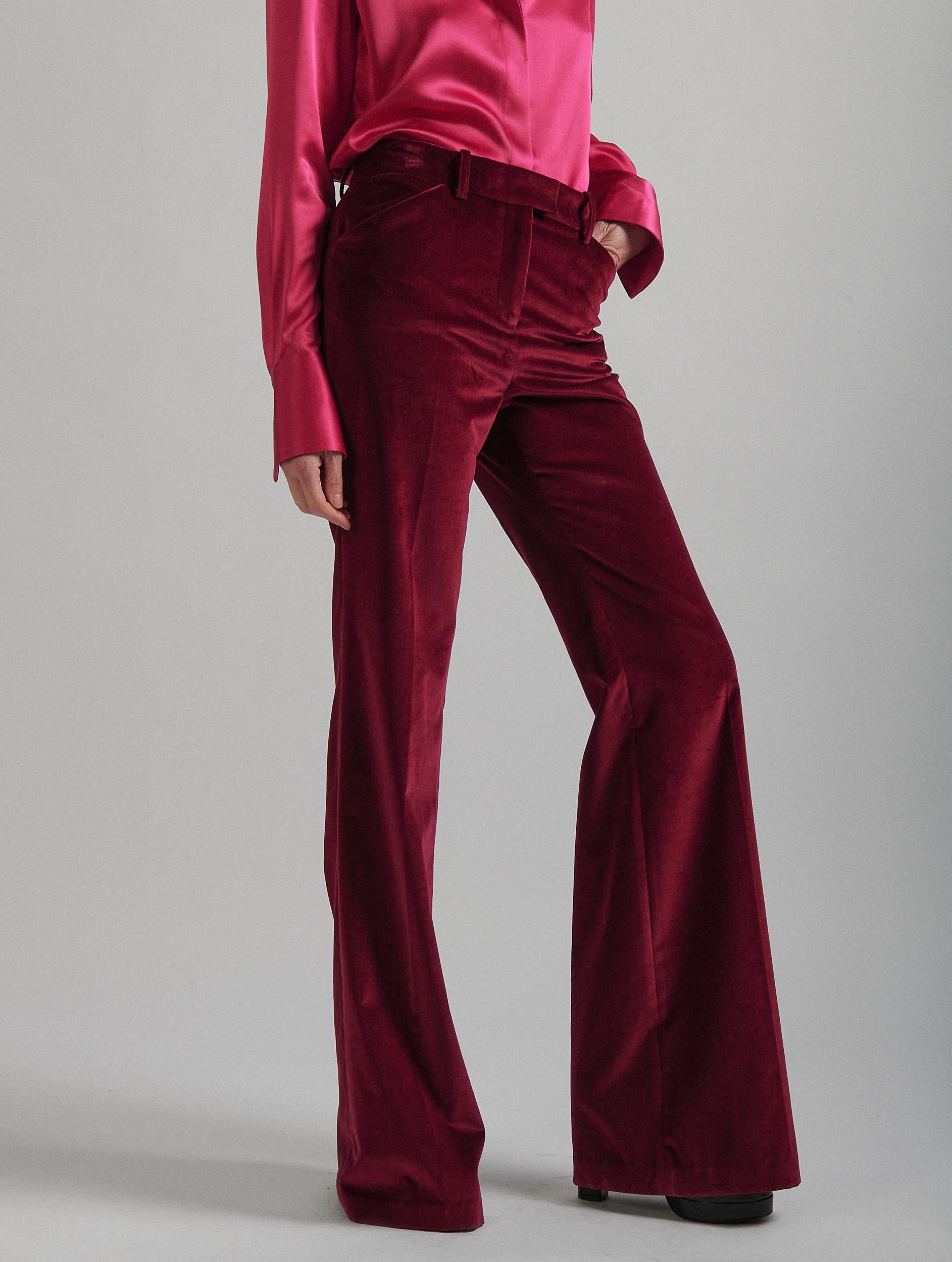 Bootleg suit trousers in pomegranate velvetSKU:E1619EHK_53