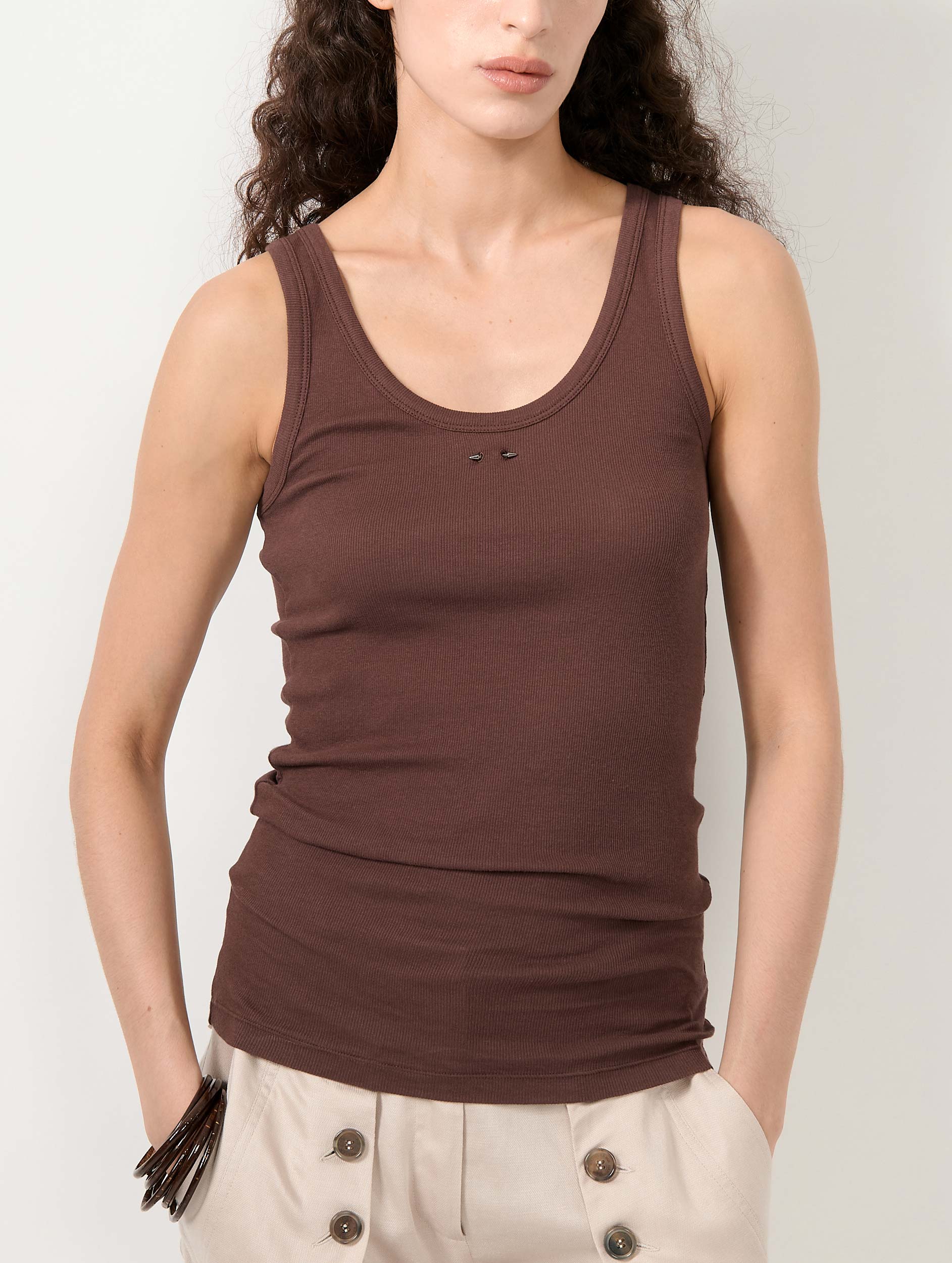 Brown ribbed jersey tank top