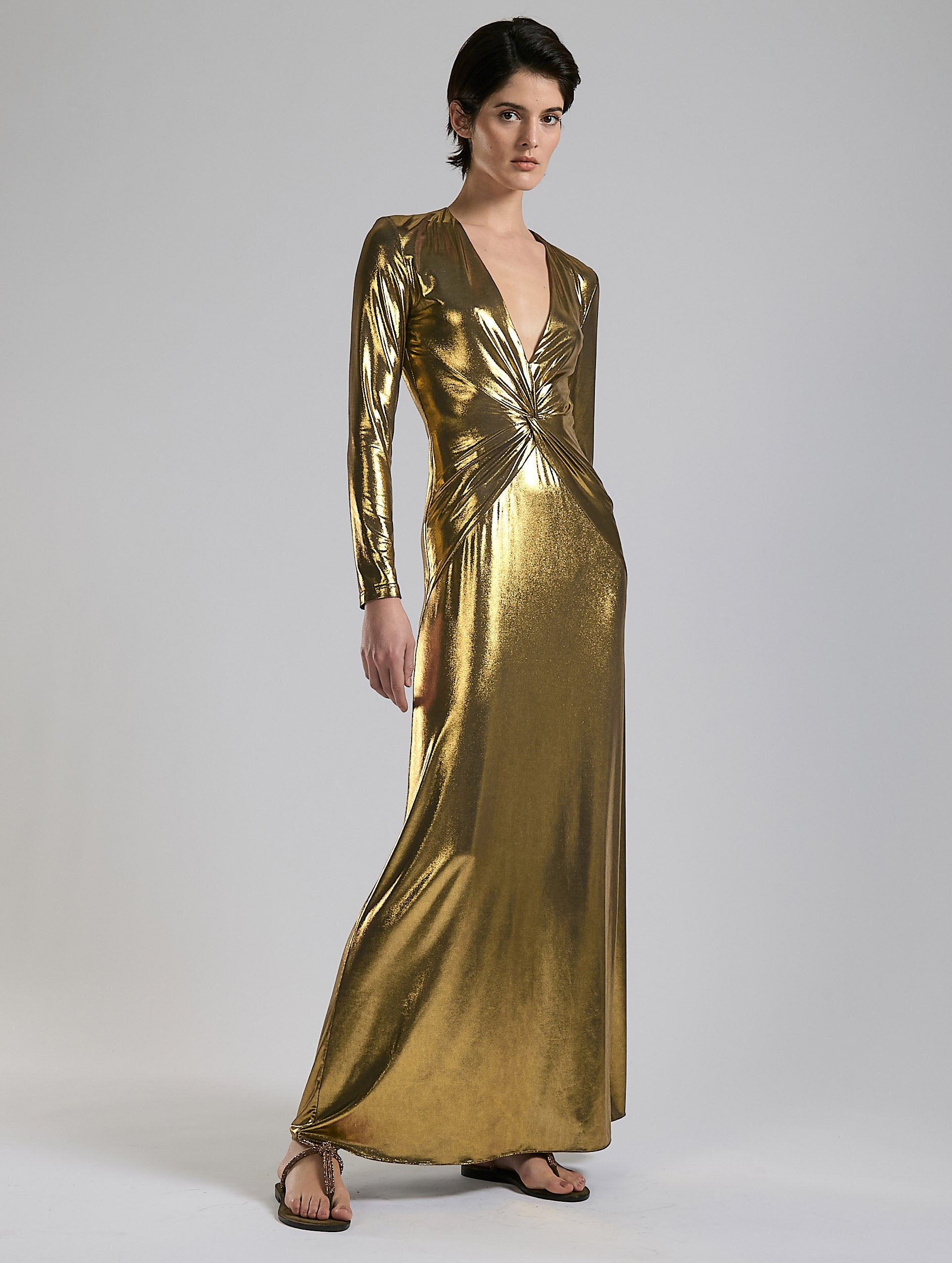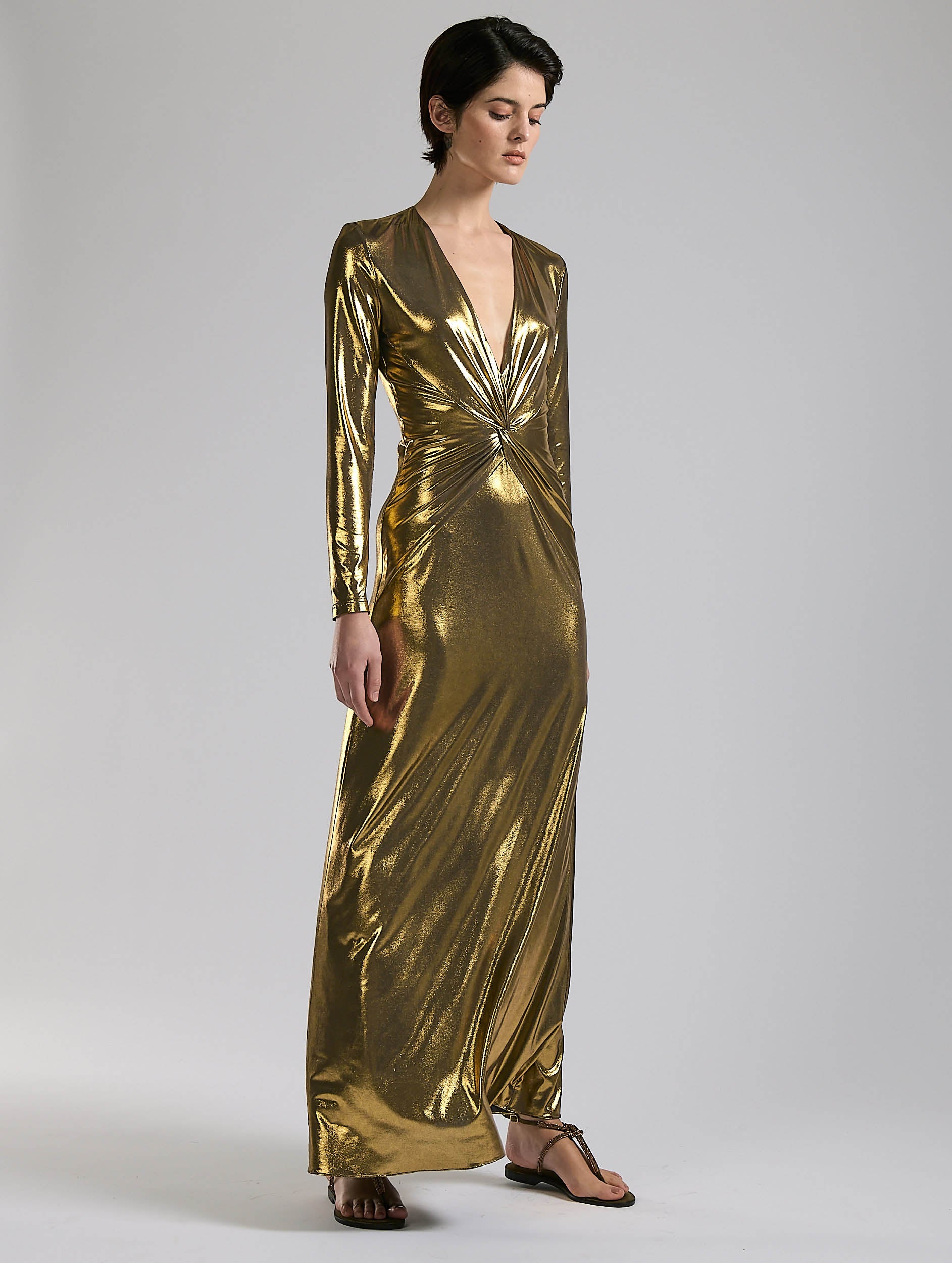 Gold metallic jersey maxi dress