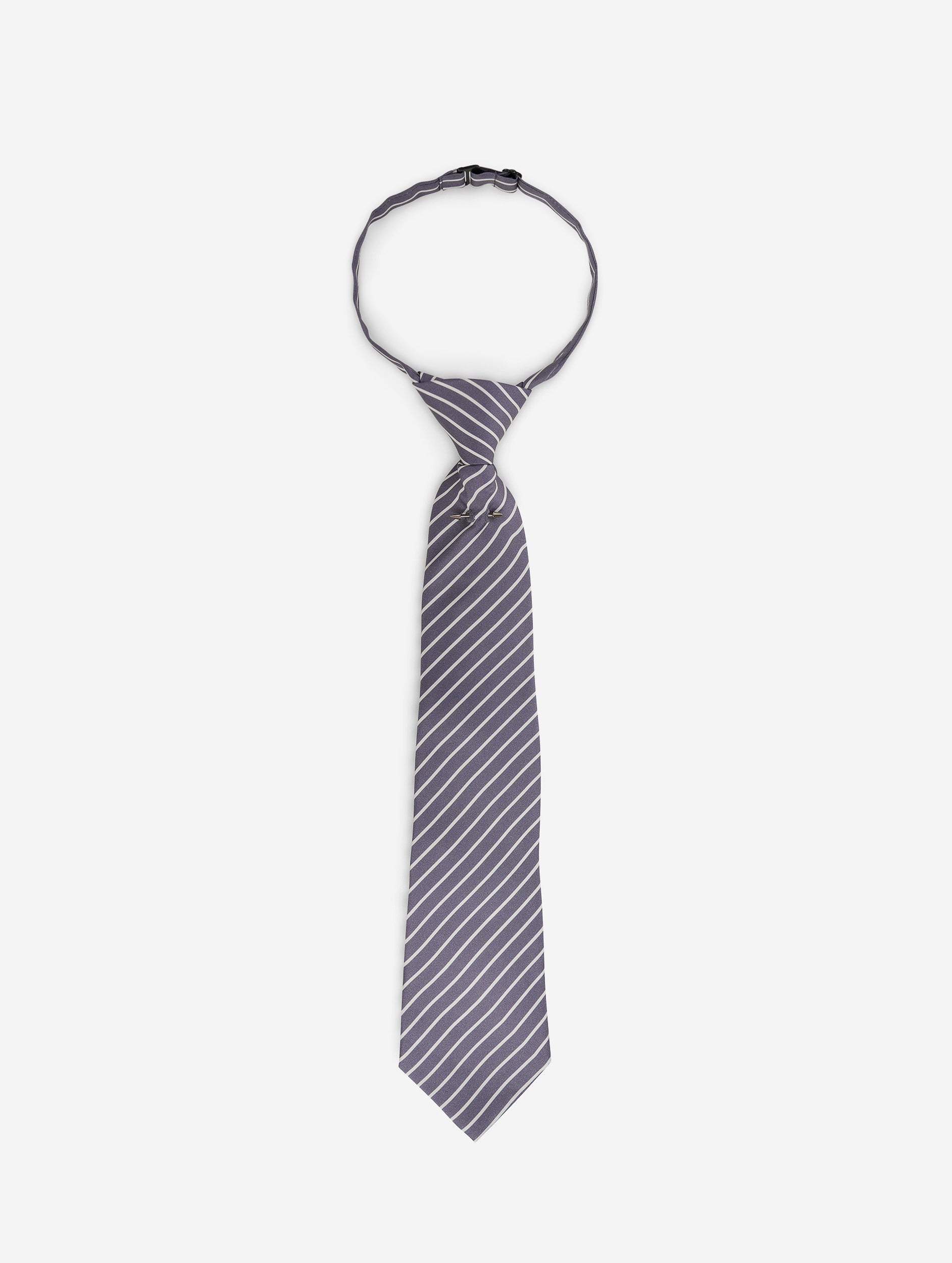 Grey and white striped silk twill tie