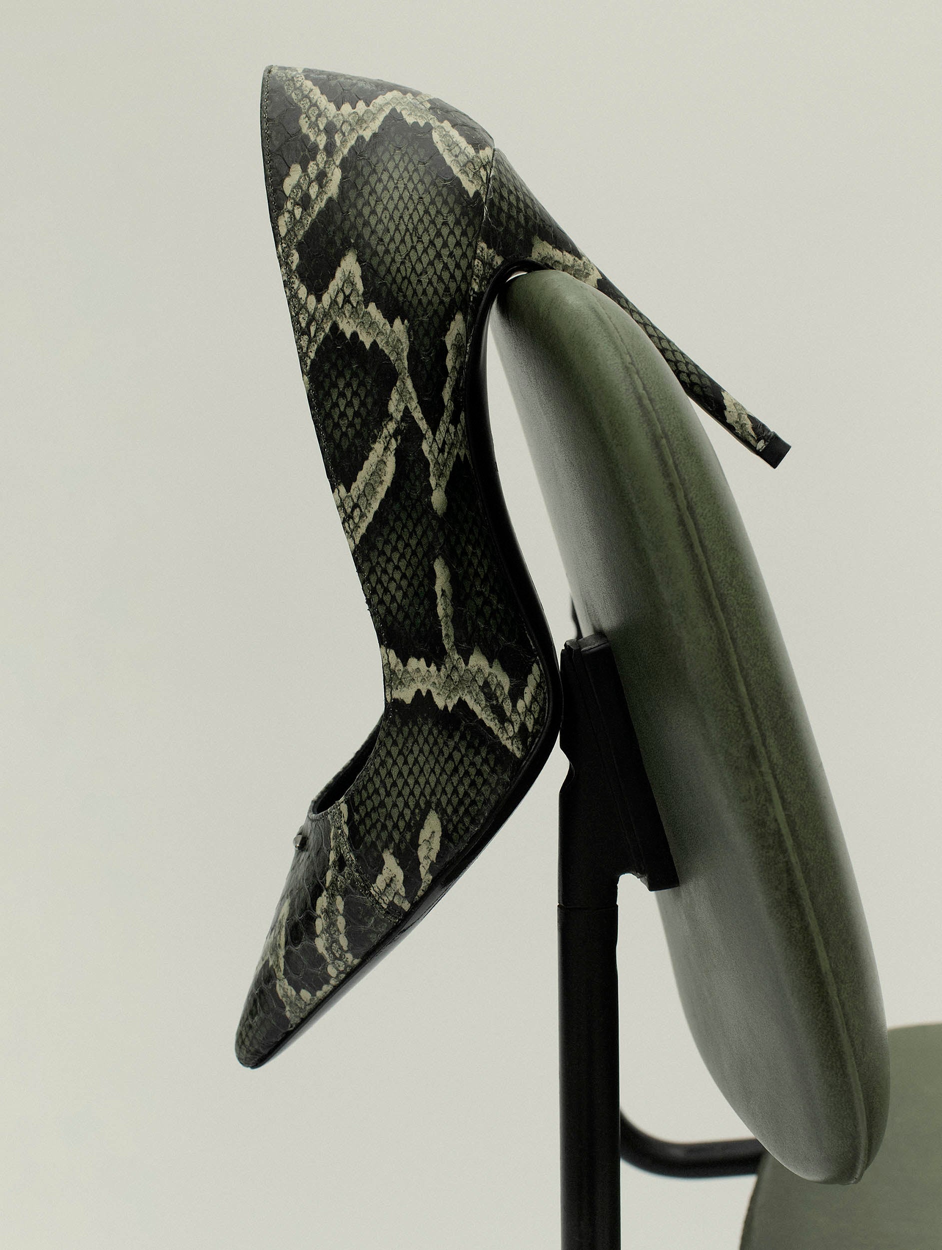 Khaki reptile stilettos