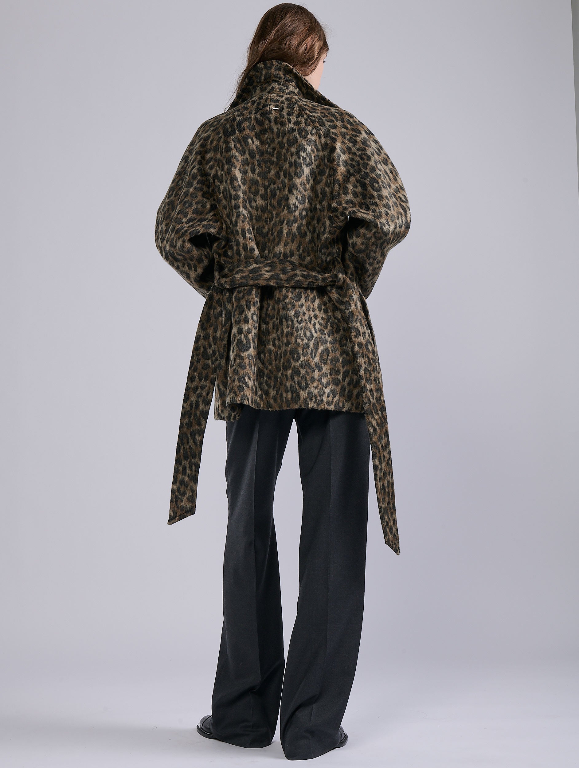Leopard jacquard belted short coatSKU:G1124GAI_38