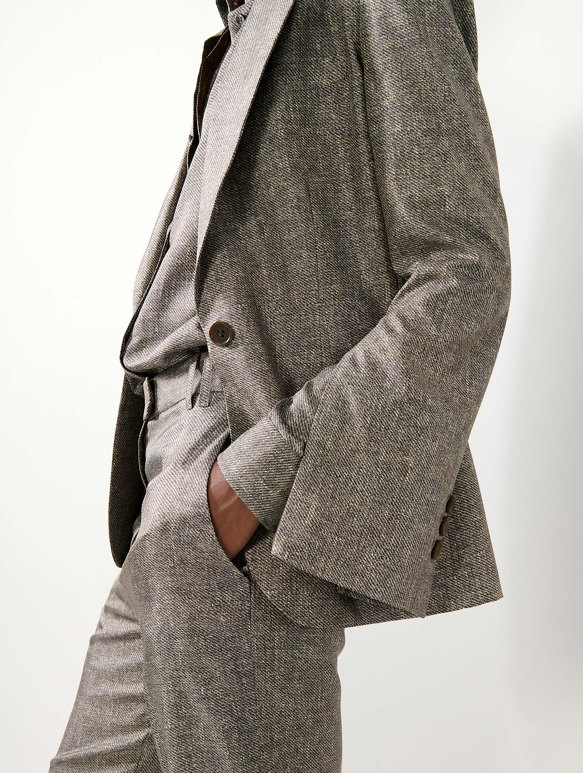Lino print silk twill suit jacketSKU:H1204HRM_51