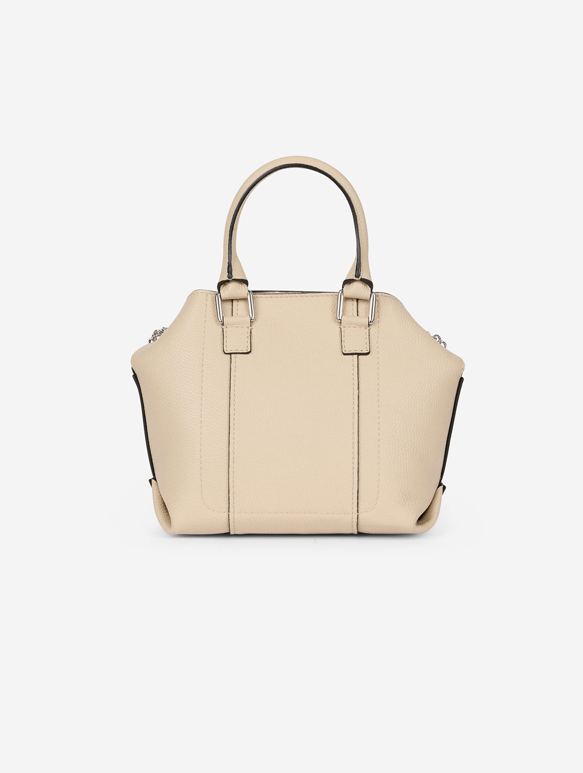 "Little Chamallow" small tote bag in ivory grained calfskin bonded to its reversible lining. Articulated handles for carrying by hand and a sliding chain shoulder strap allowing it to be worn over the shoulder, either with a short double chain or a long single chain. Interior slip pocket and magnetic closure.