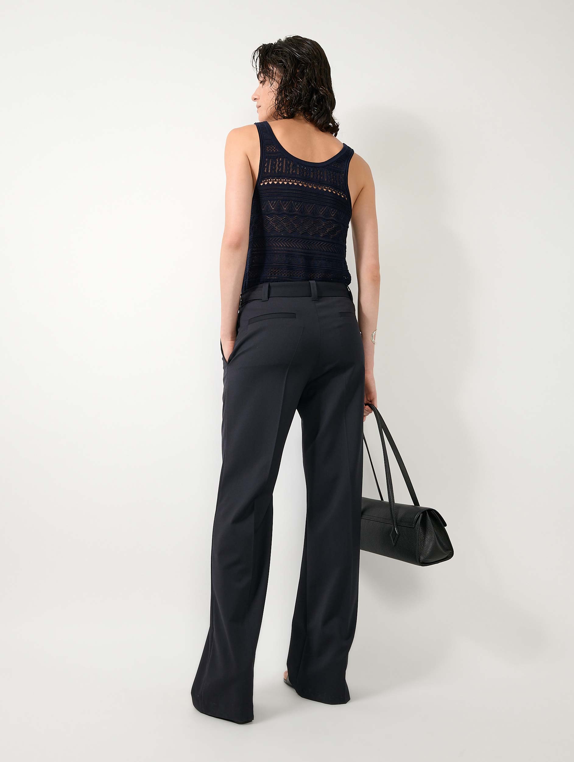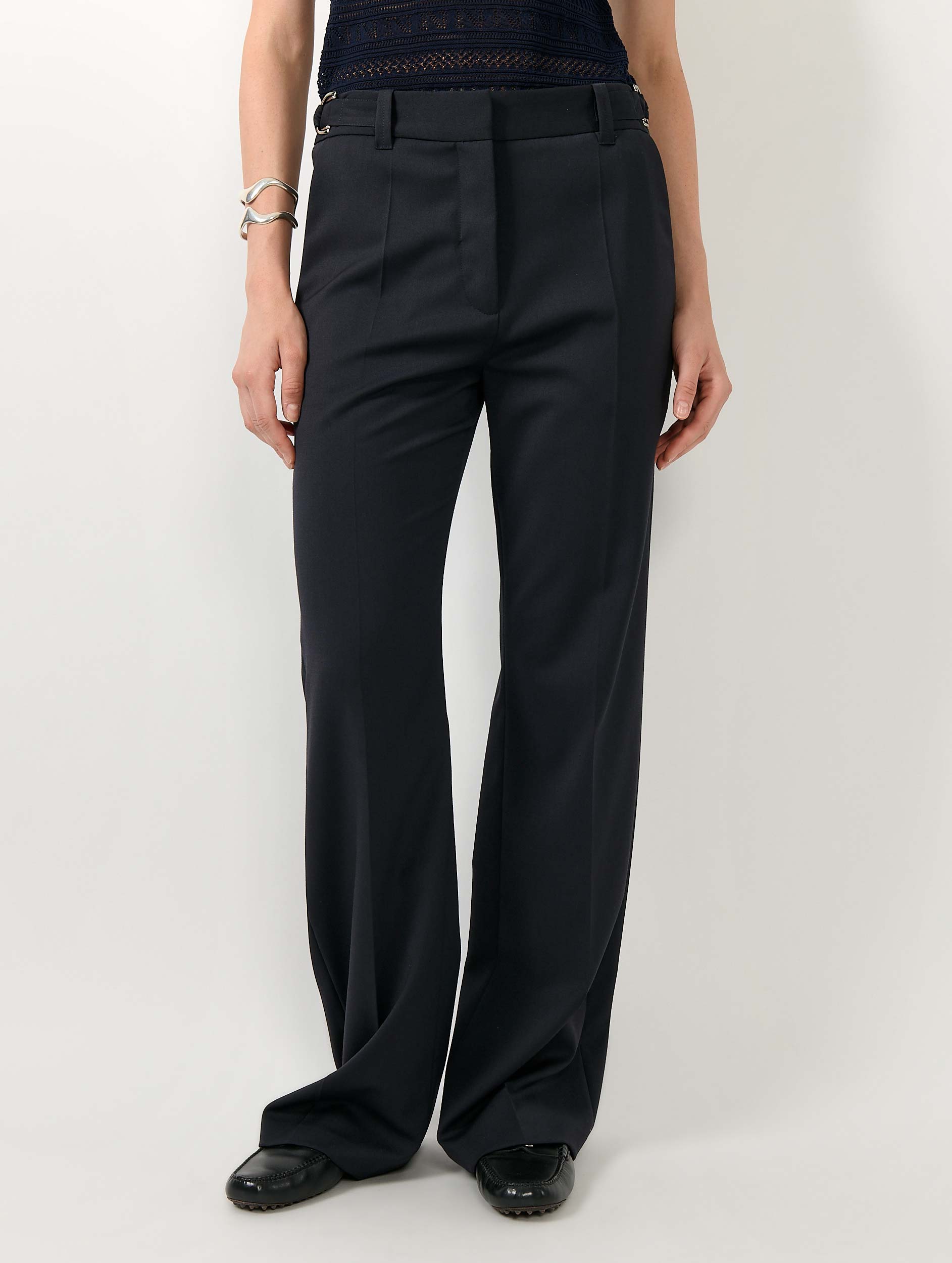 Navy wool gabardine wide leg trousers