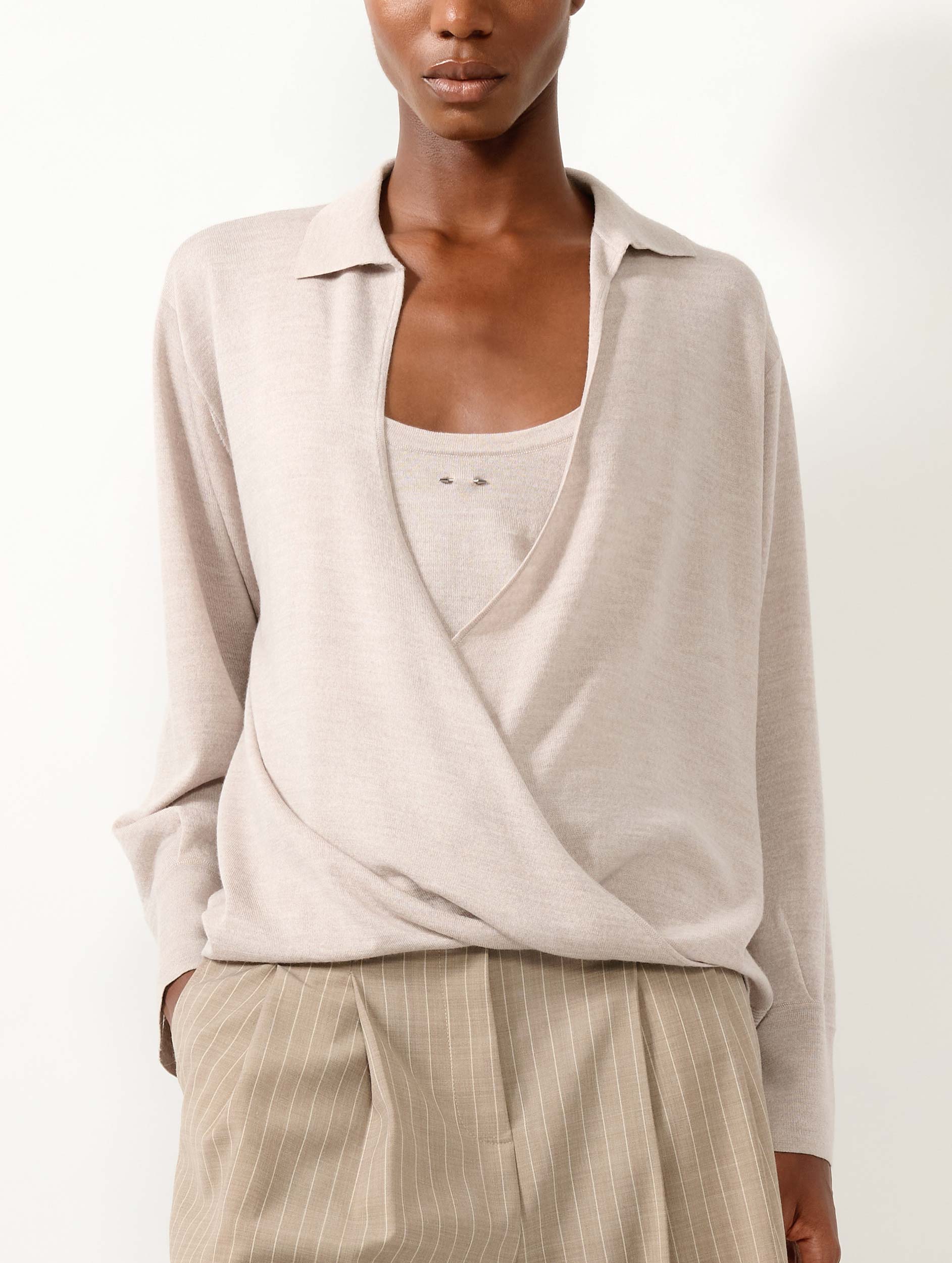 Sand extra-fine wool and silk wrap sweaterSKU:H4201XXA_41