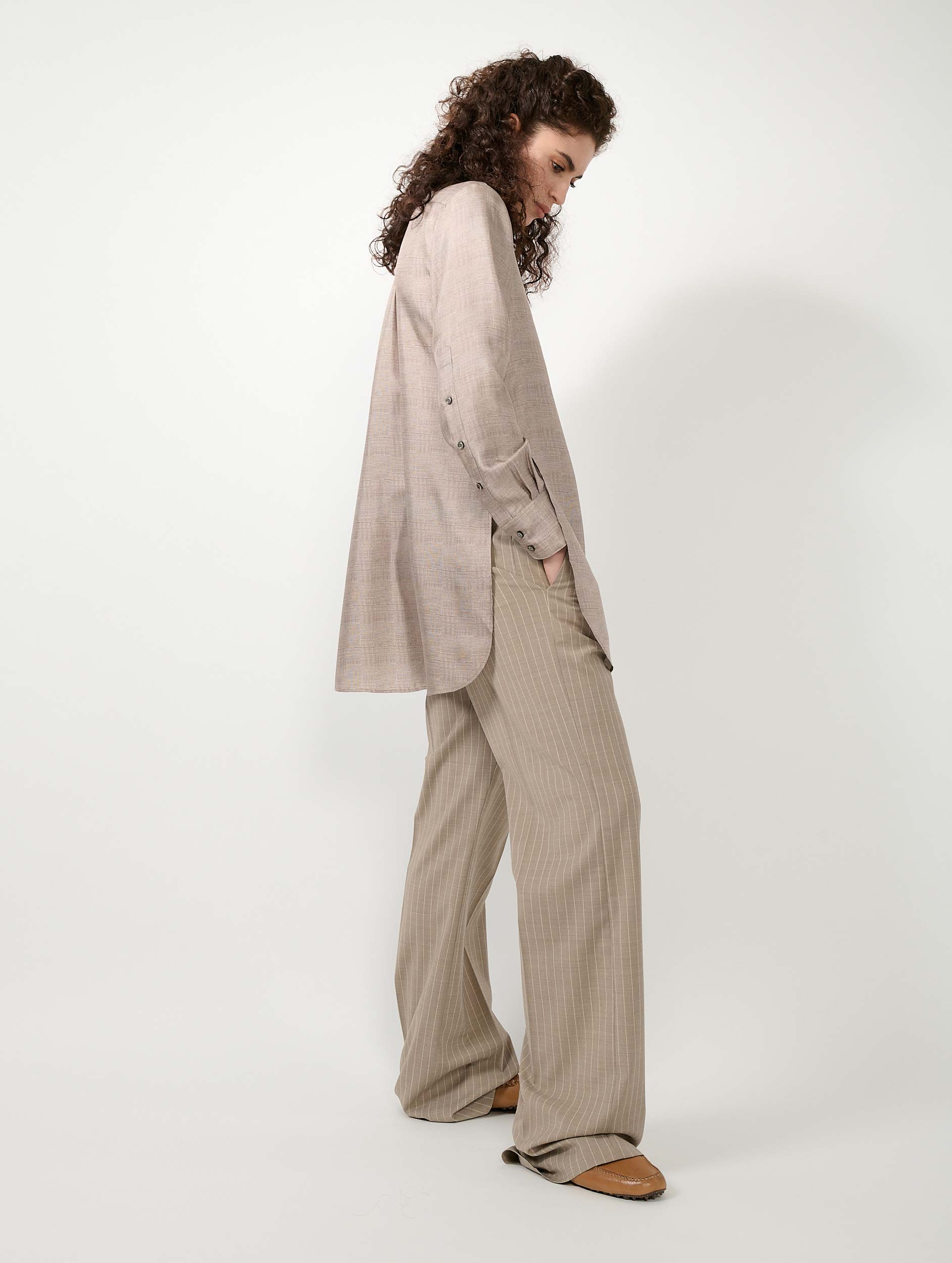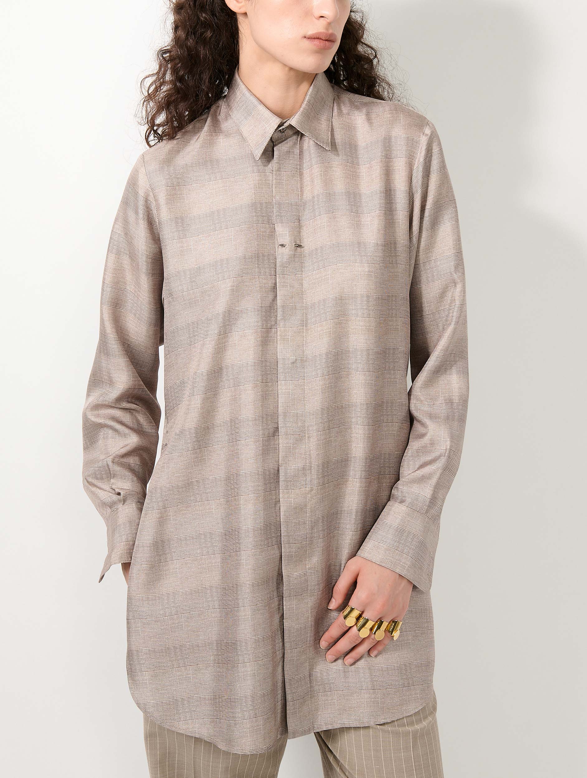 Sand Prince of Wales check silk twill long shirt